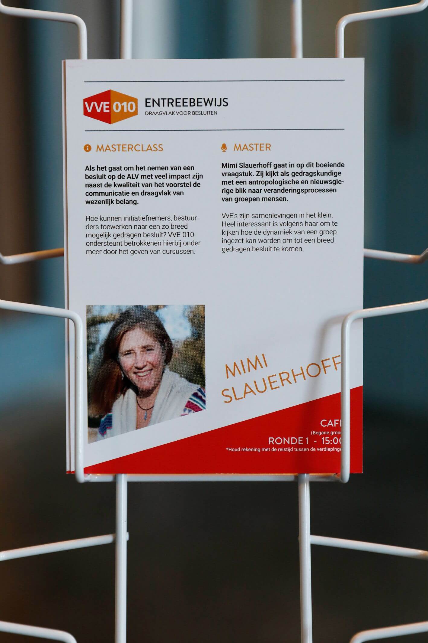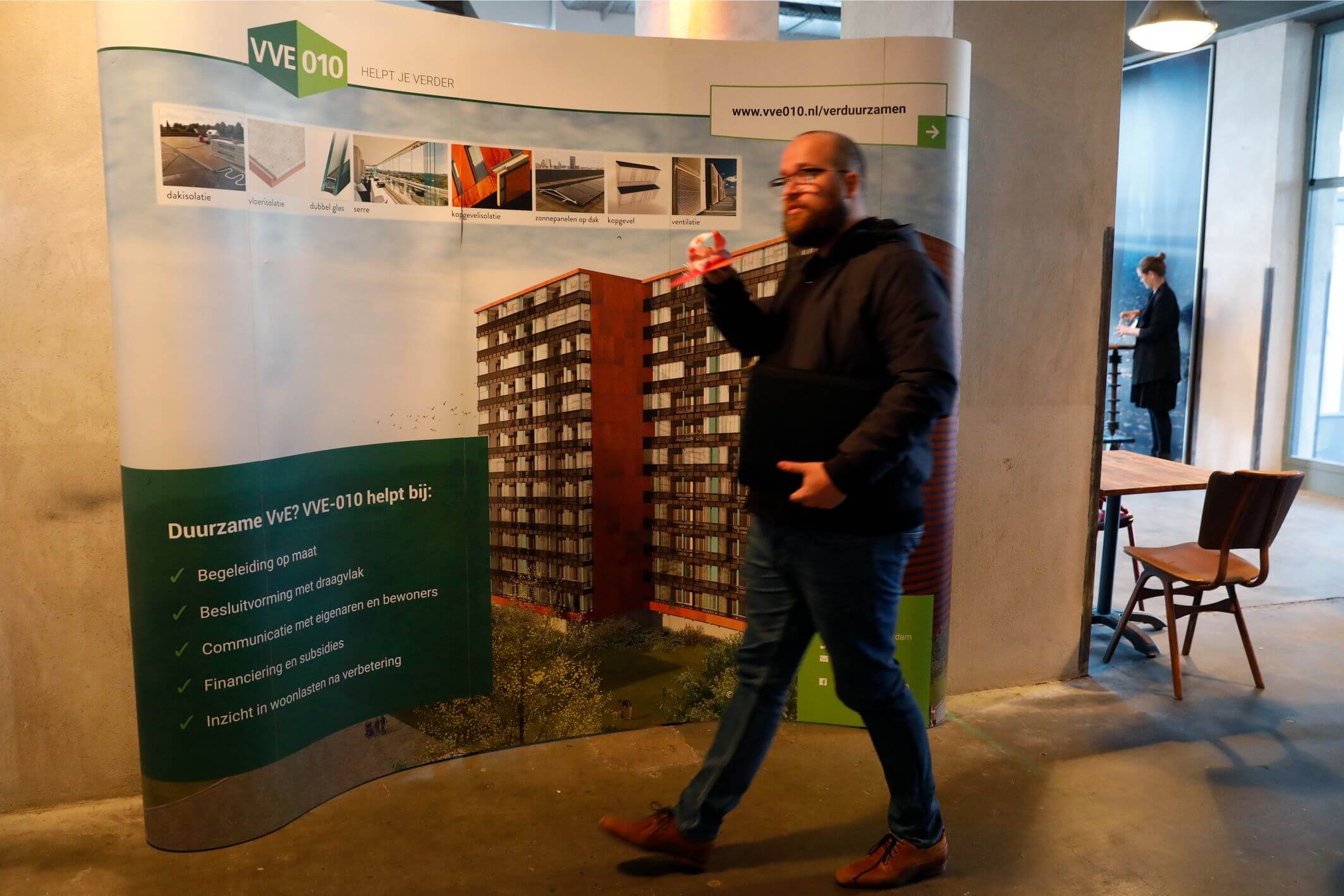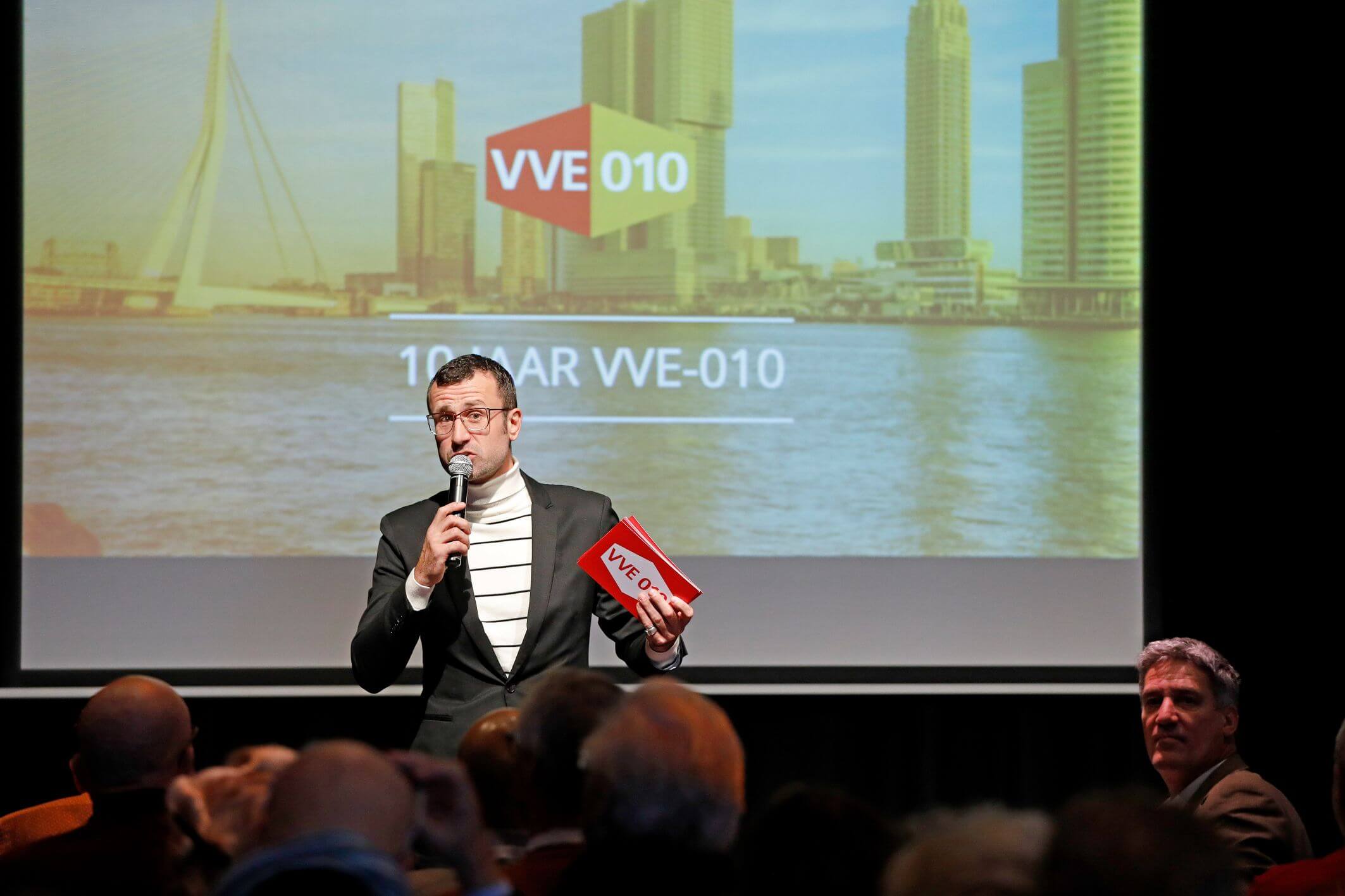 Eerst is in een kort plenair programma terug- en vooruitgeblikt op de inzet van VVE-010 voor de Rotterdamse appartementseigenaren. Frank Peters, directeur VVE-010, vertelde over de uitdagingen van de komende jaren. Dat zijn onder andere het tegengaan van de versnipperde VvE-structuur en verduurzaming. Dirk Dekker, bestuurder van VvE Blaak-Nieuwstraat, hield vervolgens een pleidooi voor het VvE Netwerk Rotterdam. Het doel hiervan is het delen van kennis en ervaring tussen actieve besturen en commissieleden. En ten slotte vertelde Alex Moret vanuit zijn rol als voorzitter klimaattafel Gebouwde omgeving over het Rotterdamse Klimaatakkoord en de betekenis hiervan voor VvE's.