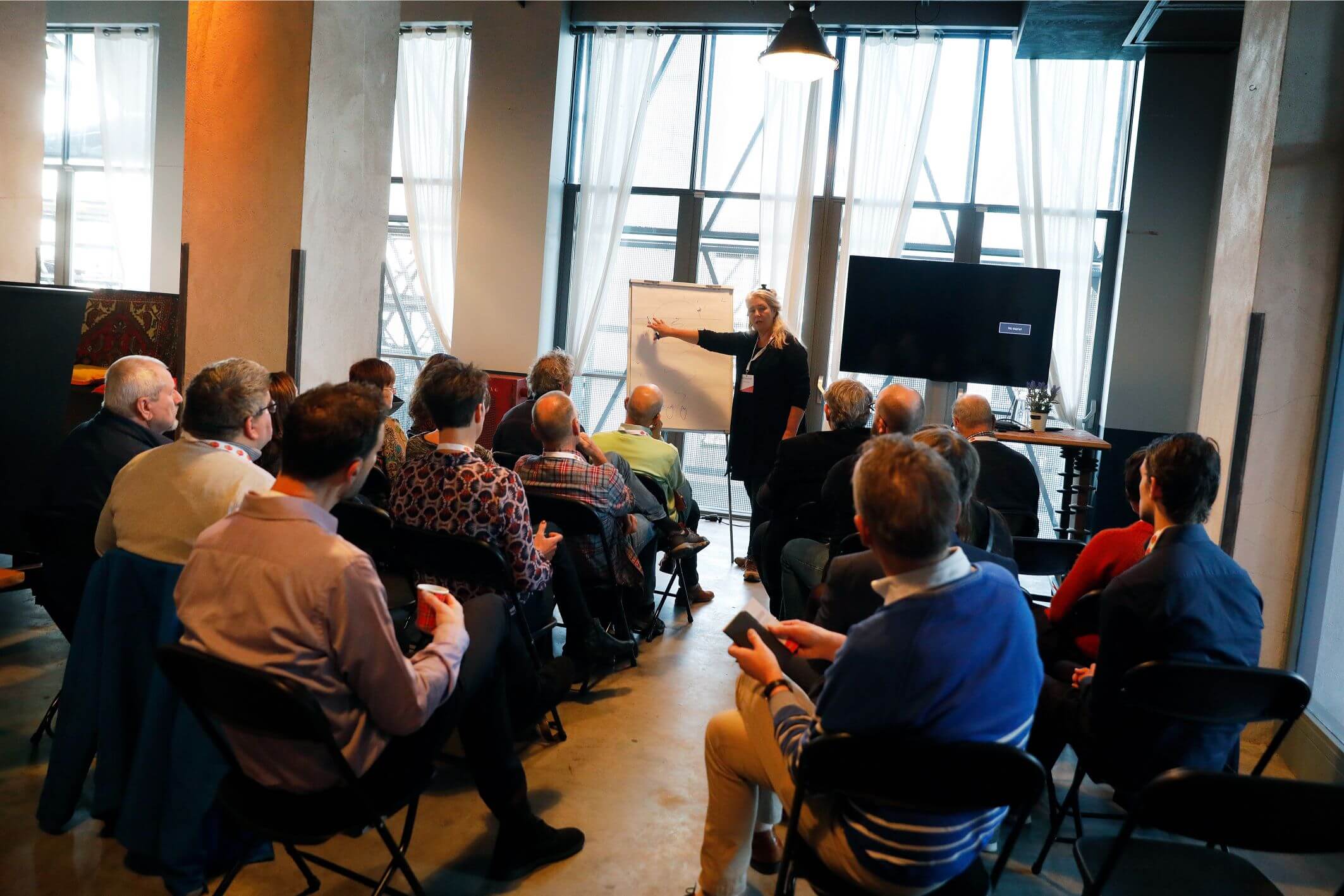 Mimi Slauerhoff nam de deelnemers aan haar masterclass mee in dit boeiende vraagstuk. Zij kijkt als gedragskundige met een antropologische en nieuwsgierige blik naar veranderingsprocessen van groepen mensen.