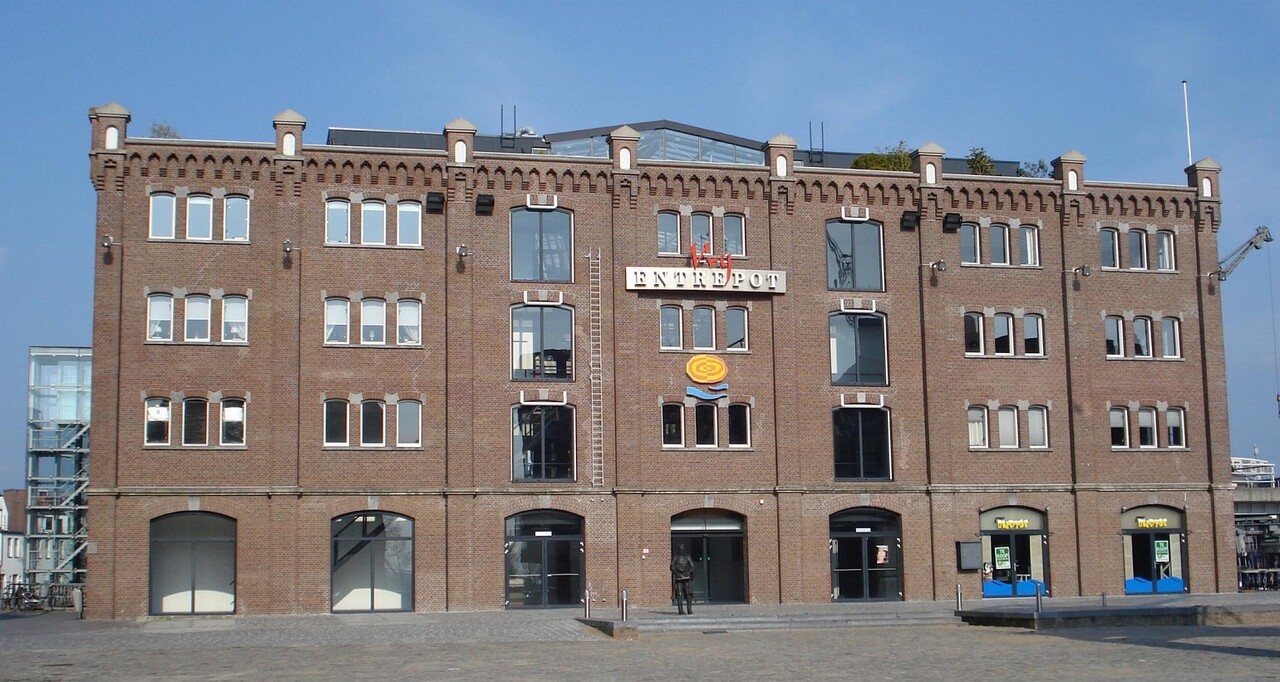 Foto: Entrepotgebouw, Handelsplein 1-125 te Rotterdam, rijksmonument met appartementen.